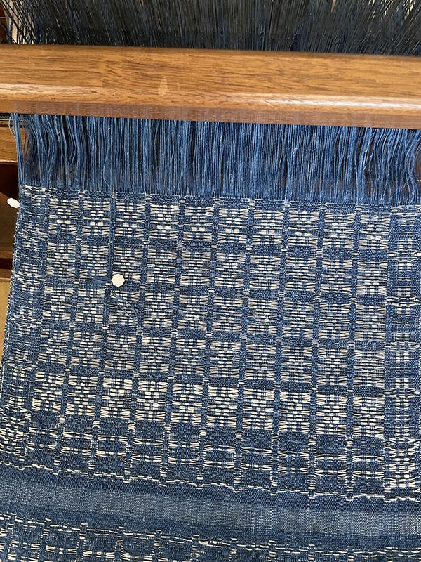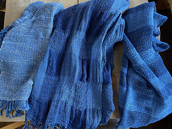 元川さん 麻の経絣ワンピース 井上さん 1/7W糸を丁字と藍染めに オーバーショットで広巾ショール 2020.9.9更新